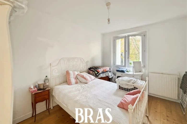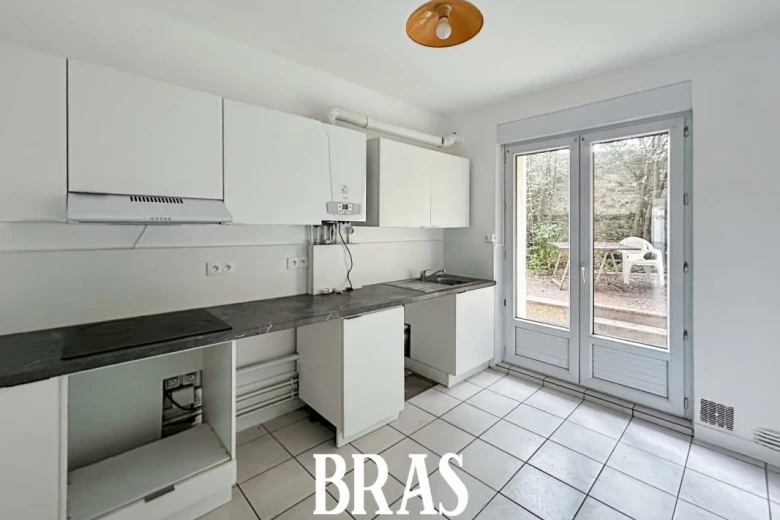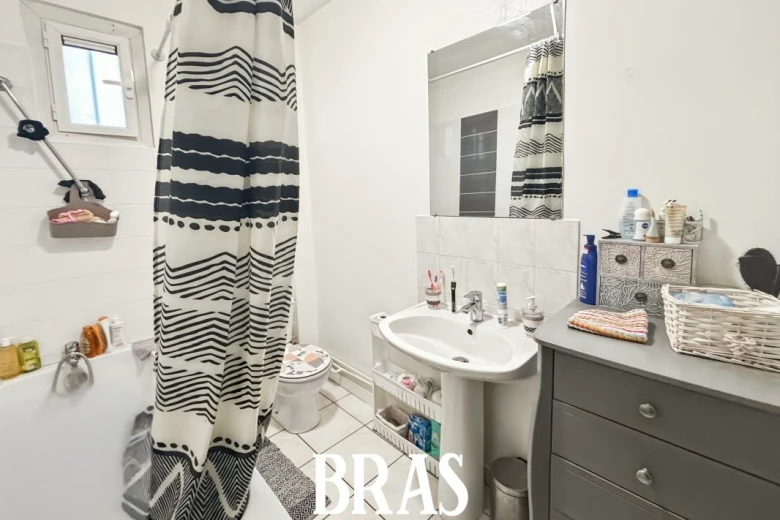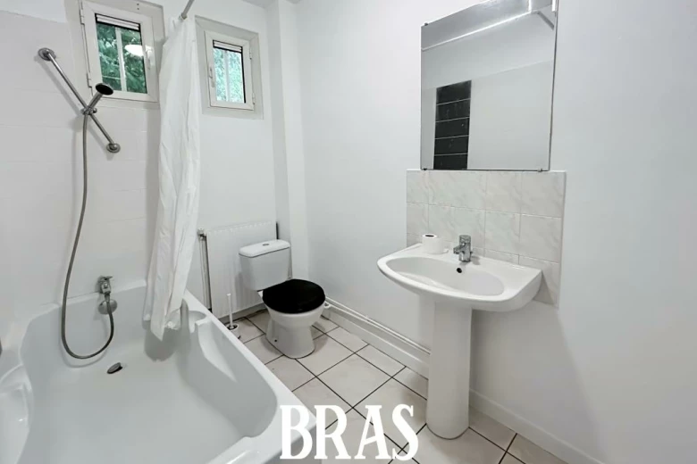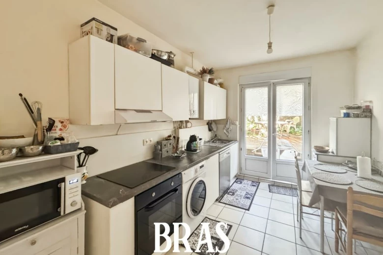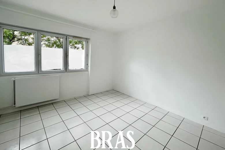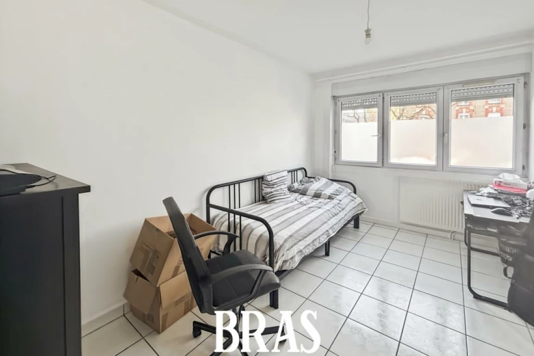 Dans une résidence calme, à proximité du tramway ligne 1, appartement de type 3 DUPLEX de 55,16m² (81,94m² au sol) situé au rez-de-chaussée et comprenant : entrée, pièce de vie de 11,72m², donnant sur cour avec jardinet, cuisine de 10,79m² séparée, aménagée et équipée (plaques de cuisson et hotte), 2 chambres de 10,58m² et 13,13m², un salon de 26,10m au sol (pouvant servir de 3ème chambre), salle de bains avec une baignoire, lavabo et WC.