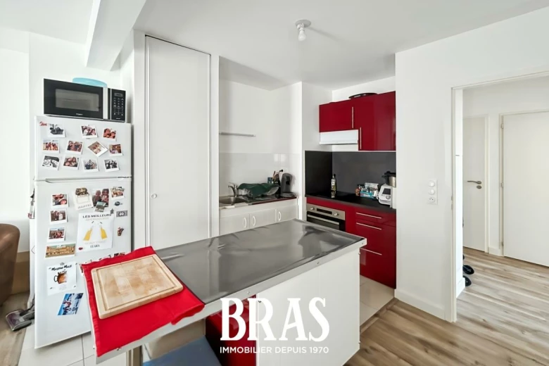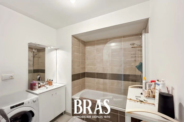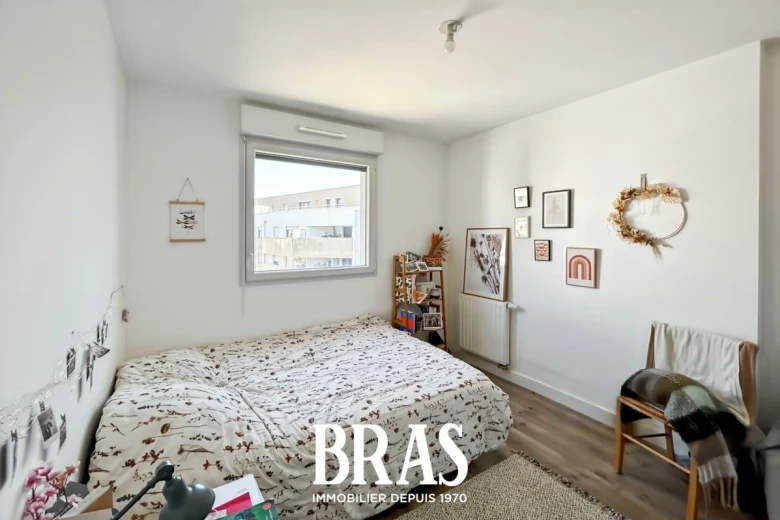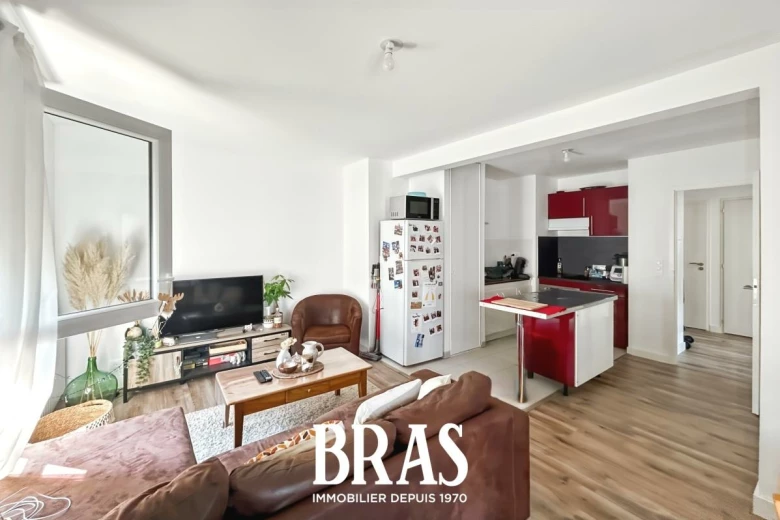 Dans une résidence récente, proche des commerces et transports en communs, appartement de type 3 de 57,03m² situé au 3ème étage avec ascenseur et comprenant une entrée avec placard, une pièce de vie de 24,82m² avec cuisine aménagée et équipée (plaques de cuisson, hotte et four), donnant sur balcon de 5,56m² exposé Nord-Est, 2 chambres de 11,10m² et 9,65m², une salle de bains avec baignoire et meuble vasque, WC séparés.