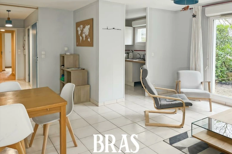 Au sein d'une copropriété calme et bien entretenue, appartement de type 3 meublé en rez-de-chaussée comprenant une entrée, une pièce de vie lumineuse donnant sur une terrasse de 9.14 m², cuisine ouverte équipée et aménagée (plaque 4 feux, four, meubles hauts et bas, micro onde, emplacement lave-vaisselle), un dégagement avec placard, salle de bains avec lave-linge, WC séparés, une grande chambre avec placard, un bureau pouvant faire office de chambre d'appoint.