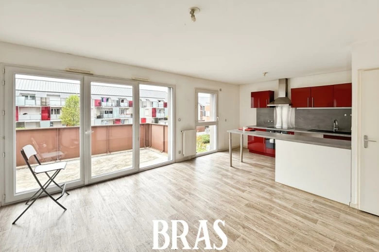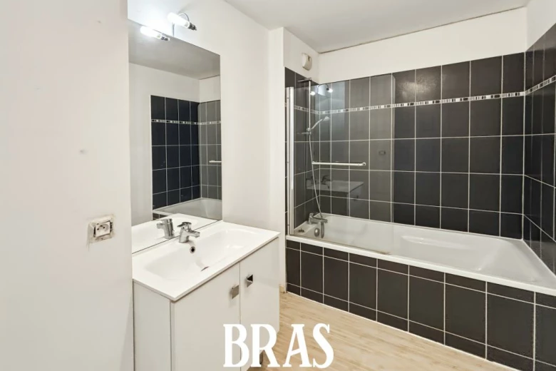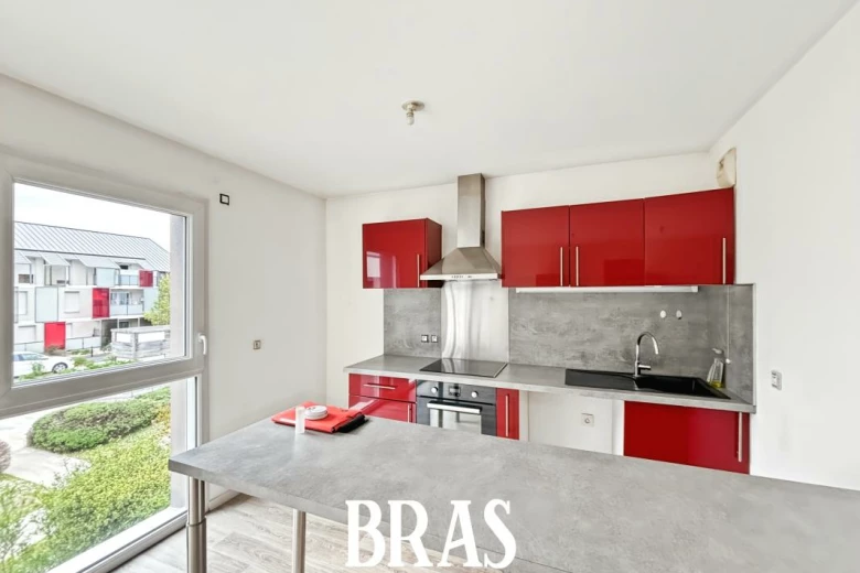 Dans une résidence au calme, Appartement de type 3 de 60,20m² situé au 1er étage sans ascenseur et comprenant : une entrée avec placard, séjour de 27,18m² avec cuisine aménagée et équipée (plaques vitrocéramiques, four et hotte), donnant sur un balcon de 8,00m² exposé Nord-Ouest, cellier, dégagement, 2 chambres de 11,74m² et 9,31m² dont une avec placard, une salle de bains avec baignoire et meuble vasque, WC séparés.