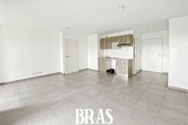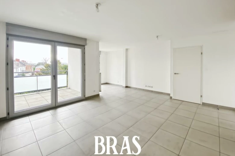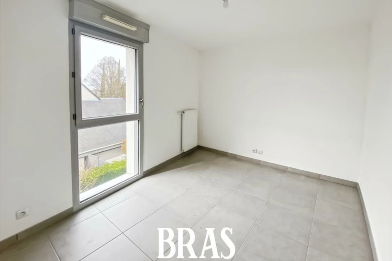 Route de Rennes - Dans une résidence récente, proche des commerces et transports en communs, un appartement de type 3 de 61,87m² situé au 2ème étage avec ascenseur et comprenant : une entrée avec placard, un séjour de 29,45m² avec cuisine aménagée et équipée (plaque de cuisson et hotte), donnant sur une loggia de 5,18m² exposée Sud-Est, un dégagement desservant 2 chambres de 13,05m² et 10,09m² avec placard, une salle d'eau avec douche et meuble vasque, WC séparés.