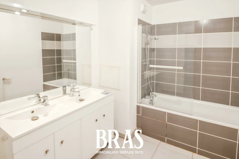 Dans un immeuble de 2015, appartement de type 3 de 61m² situé au 3ème étage avec ascenseur et comprenant : une entrée avec placard, pièce de vie de 23,50m² avec cuisine aménagée et équipée (plaques de cuisson et hotte), donnant sur un balcon de 7,50m² exposé Sud-Est, 2 chambres de 12,50m² et 9,50m², une salle de bain avec baignoire et meuble vasque, WC séparés.