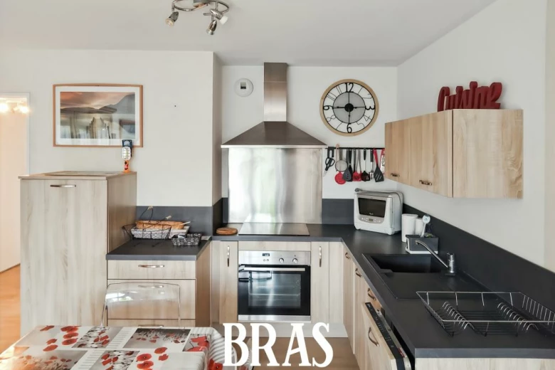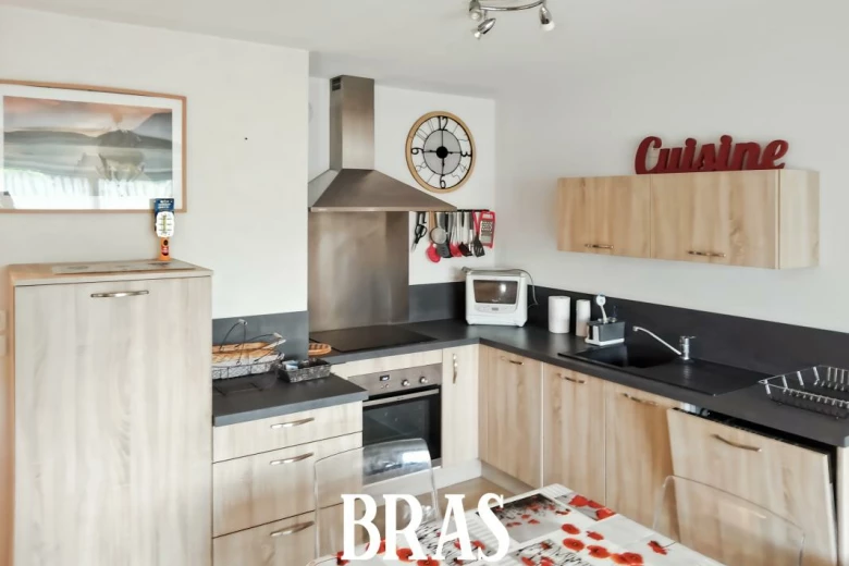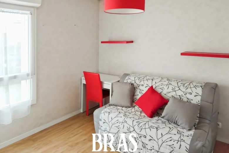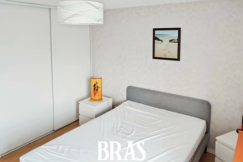 Un appartement meublé de 3 pièces (61.46 m²) situé au deuxième étage avec ascenseur et comprenant : entrée (avec placards), séjour avec espace cuisine aménagée et équipée (plaques, hotte aspirante, four encastré, réfrigérateur et lave vaisselle) de 25.83 m² , balcon (8.42 m²) deux chambres (avec placards) de 12.75 m² et 9.17 m², salle de bains (avec branchement machine) w.c séparés (avec lave-mains).