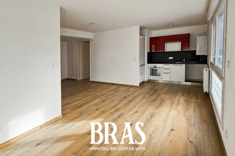 Dans une résidence récente, appartement de type 3 de 62.25m² situé au 2ème étage avec ascenseur et comprenant : entrée, séjour avec cuisine aménagée et équipée (four, table de cuisson induction, et hotte) de 26.03 m² donnant sur un balcon de 6.17 m², dégagement avec placard, 2 chambres (12 et 10.09 m²) dont une avec placard, une salle de bains, WC séparés.