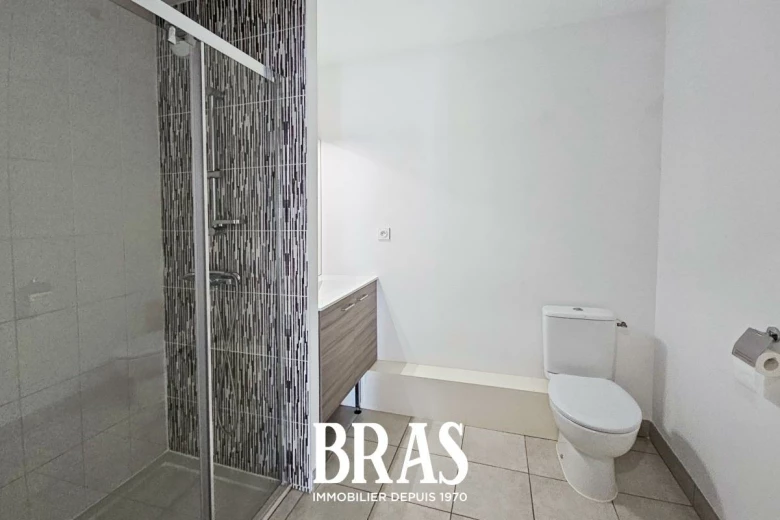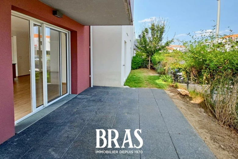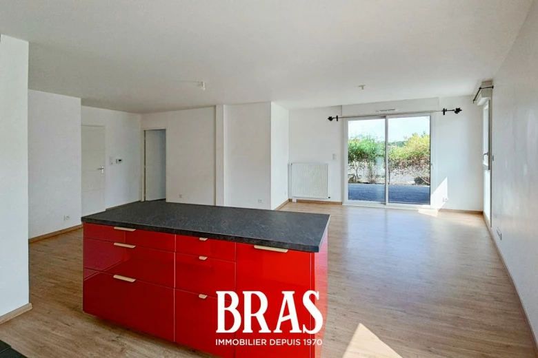 Dans une résidence de 2018, appartement T3 situé au rez-de-chaussée, comprenant une entrée avec placard, un salon-séjour avec une cuisine aménagée (meubles hauts et bas) et équipée (hotte, plaques, four) (32 m² environ) donnant sur une terrasse de plus de 12 m², 2 chambres, une salle d'eau avec WC.