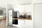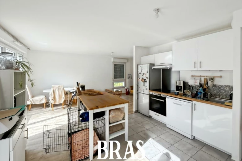 Dans une résidence de 2022, appartement de type 3 de 64.37 m² situé au 1er étage sans ascenseur et comprenant : entrée, pièce de vie de 33.72 m² avec placard et cuisine aménagée et équipée (plaque de cuisson vitrocéramique, hotte et four) donnant sur une terrasse de 19.09m² exposée SUD, deux chambres de 11.54 m² et 10 m², une salle de bains avec une baignoire, WC séparés.