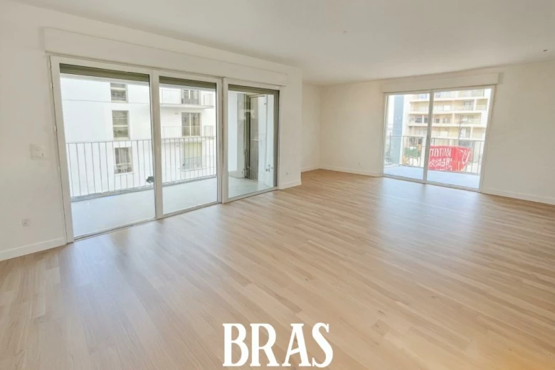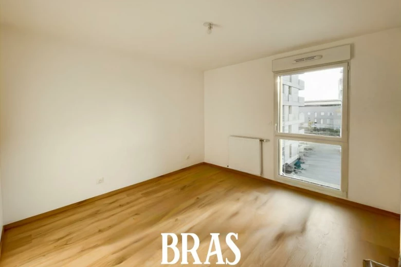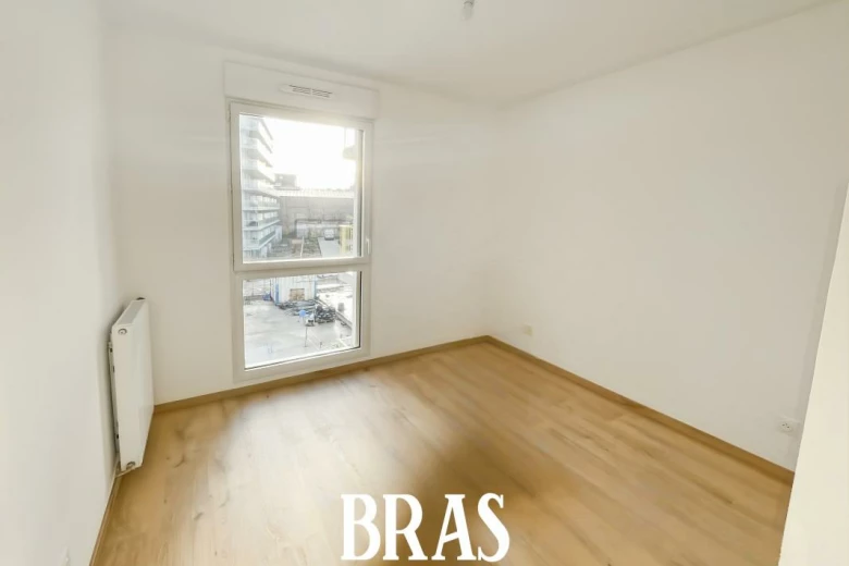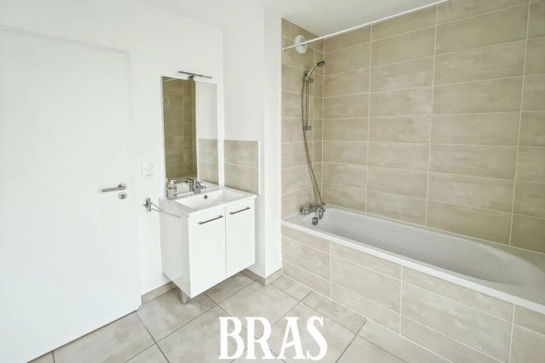 Dans une résidence neuve, appartement de type 3 de 64.84 m² situé au 2ème étage avec ascenseur et comprenant : entrée avec placard et cellier, séjour avec cuisine aménagée et équipée (four, plaques de cuisson vitrocéramiques et hotte) de 27.91 m² donnant sur une loggia de 6.80 m², dégagement, 2 chambres (9.11 et 11.47 m²), salle de bains, WC séparés.