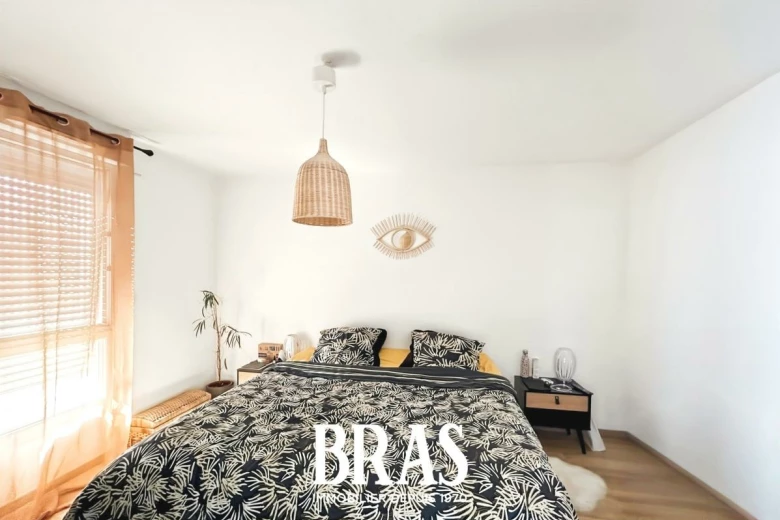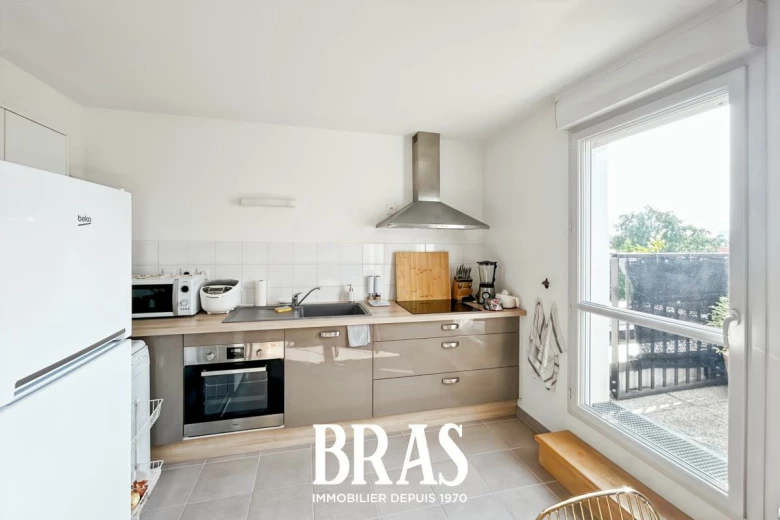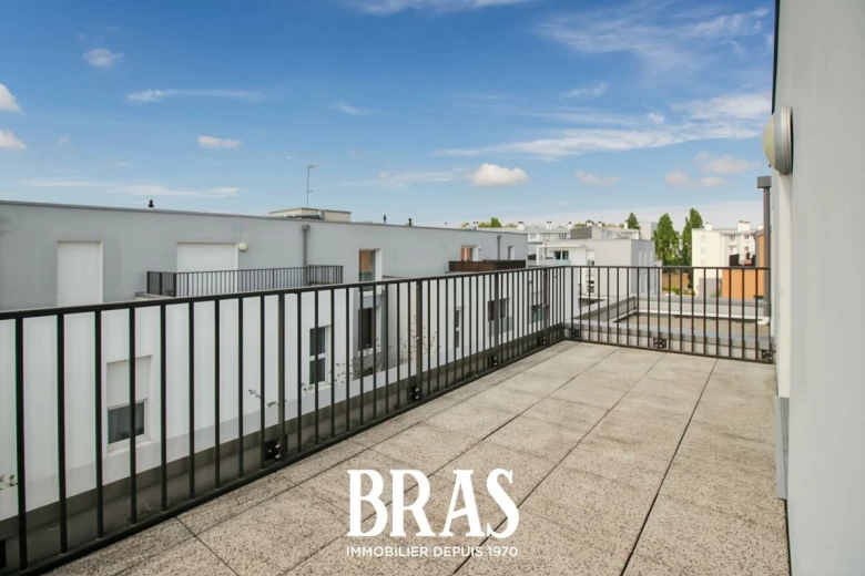Promenade des Nefs - Dans un immeuble de 2015, un appartement de type 3 de 66.36 m² situé au 3ème étage avec ascenseur et comprenant : entrée sur séjour de 31,80m² avec cuisine aménagée et équipée (plaques de cuisson vitrocéramique, four et hotte), donnant sur une terrasse de 14,18m² exposée Ouest, dégagement, 2 chambres dont une avec placard (12.30 et 12.03 m²), salle de bains avec baignoire et meuble vasque, WC séparés.