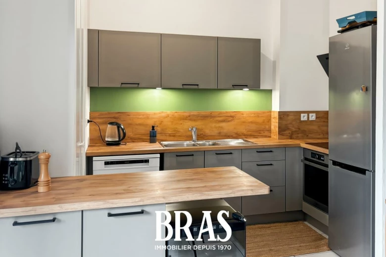 Appartement T3 - RDC - Situé à Pornichet, à proximité des commerces, composé d'une entrée, d'un WC séparé, une salle de bains avec baignoire et vasque sur meuble, un séjour, une cuisine aménagée et équipée, deux chambres dont une avec placard.