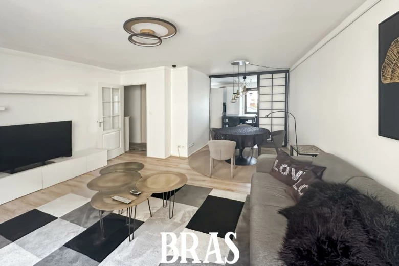 Rue Elie Delaunay - À proximité immédiate du Musée des Arts de Nantes, appartement de type 3 joliment MEUBLÉ de 68,81m², situé au 3ème étage avec ascenseur et offrant des prestations de qualité : une entrée avec placard, séjour de 23,54m², cuisine de 13,55m² aménagée et équipée (plaques induction 3 feux, lave vaisselle, machine à laver, sèche linge, réfrigérateur congélateur, four et micro-ondes), 2 chambres de 7,40m² et 8,85m² avec placard, une salle d'eau avec douche et meuble vasque, WC séparés.