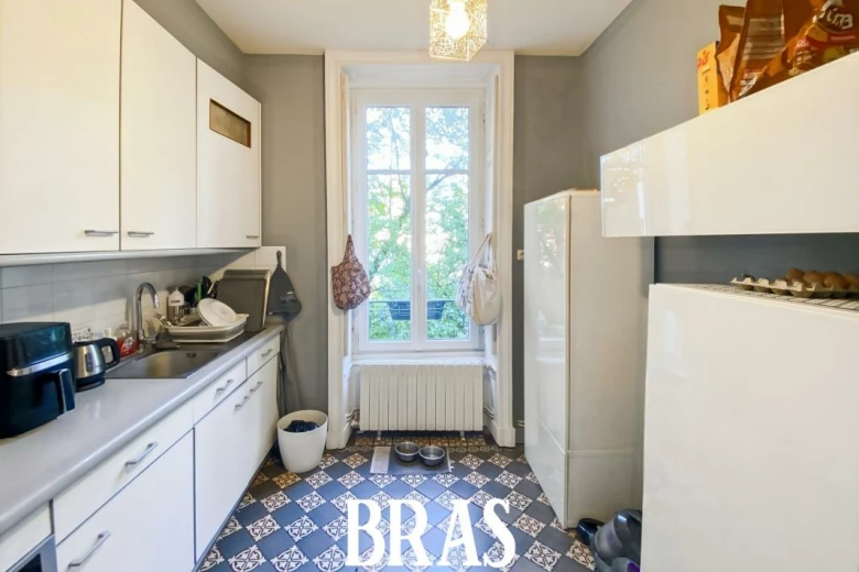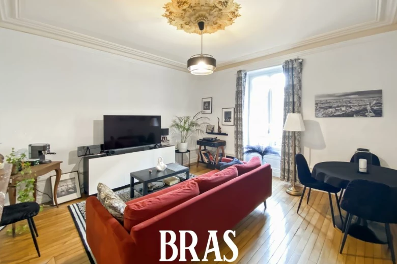 Dans une résidence calme et idéalement située, un appartement de type 3 situé au 2éme étage sur cour sans ascenseur de 70.81m² et comprenant : une entrée, un salon, une cuisine séparée, aménagée et équipée (hotte, plaque de cuisson), deux chambres, une salle de bain avec baignoire, lavabo et un WC séparé. Une cave privative. Chauffage et eau chaude individuels gaz.