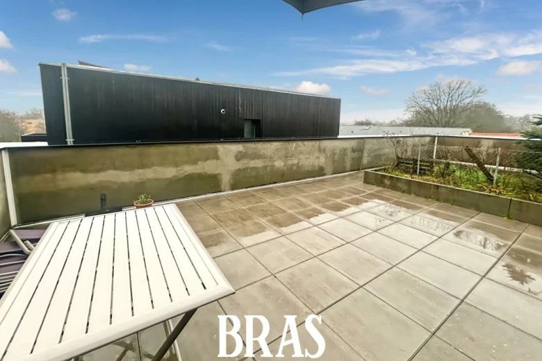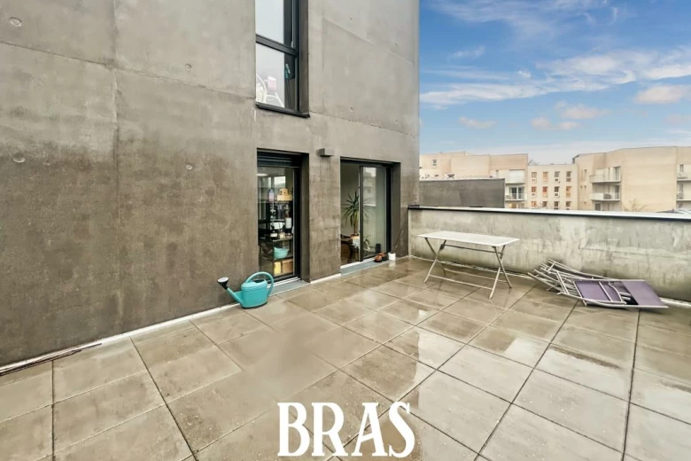 Dans une résidence appartement de type 3 DUPLEX de 73,30 m² situé au 3ème étage avec ascenseur et comprenant : une entrée, une pièce de vie de 25,70m² avec cuisine aménagée et équipée (plaques de cuisson, hotte et four), donnant sur une terrasse de 23,60m² exposée Ouest et un balcon de 4,40m², une salle de bains avec baignoire et meuble vasque, WC séparés.