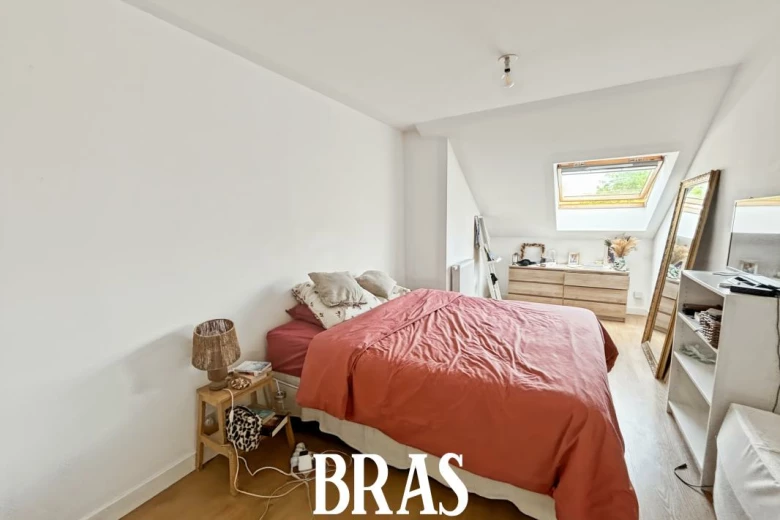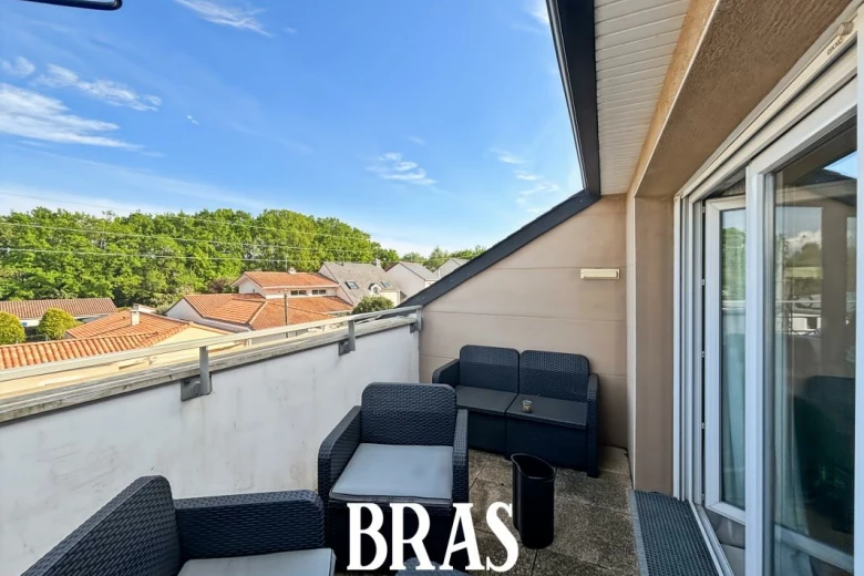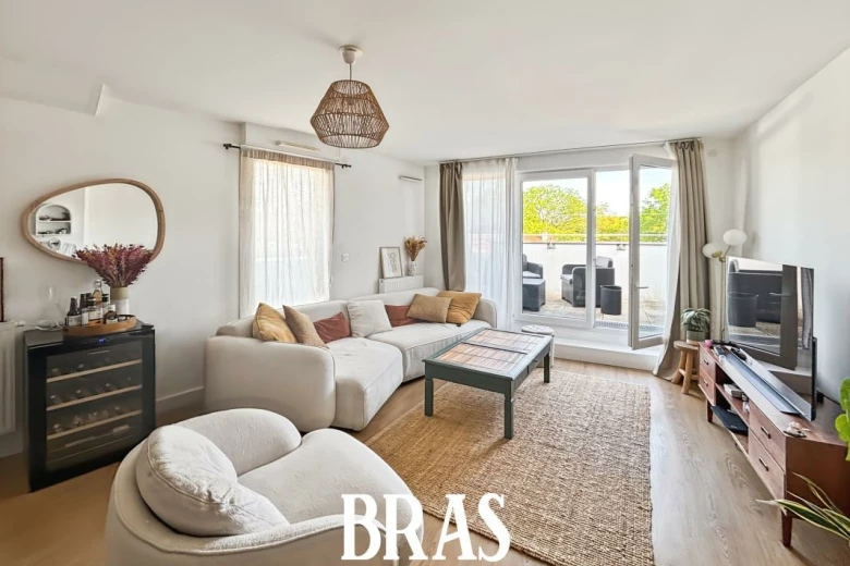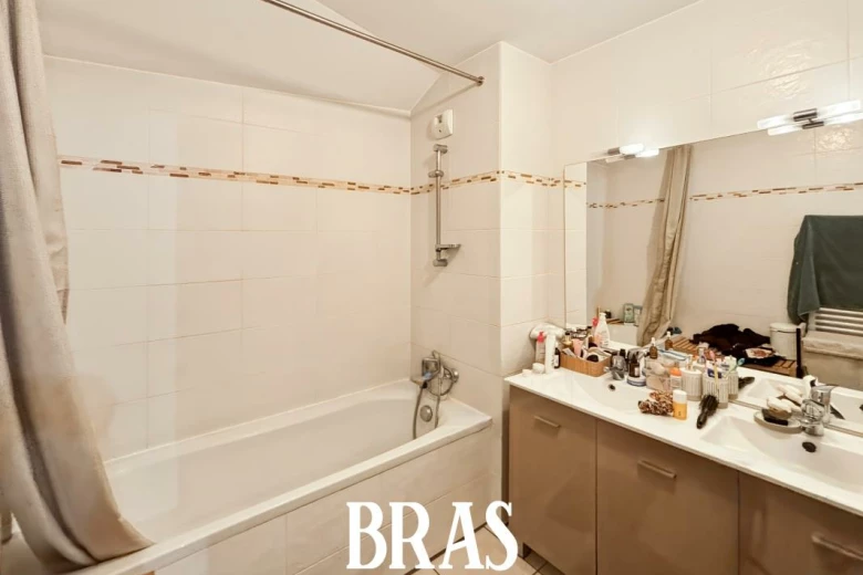 Dans une résidence récente, appartement de type 3 de 74,28m² (97,78m² au sol) situé au 2ème étage avec ascenseur et comprenant : entrée avec placard, séjour de 31,38m² avec cuisine aménagée et équipée (plaques de cuisson et hotte), donnant sur une terrasse de 18,45m² exposée Est, cellier, 2 chambres de 15,81m² et 8,22m² dont une avec dressing, salle de bains avec une baignoire et meuble vasque, WC séparés.