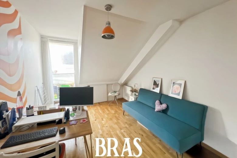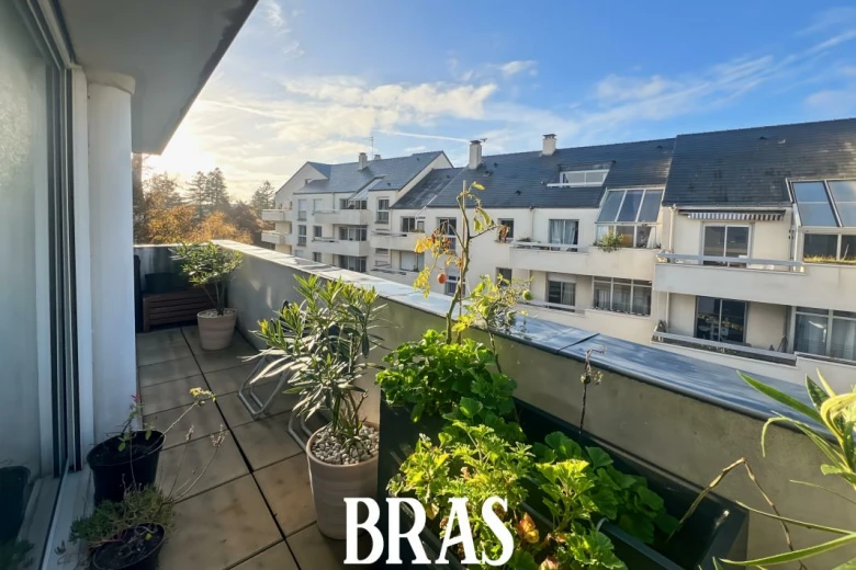 Rue de Chateaulin - Dans une résidence sécurisée, un appartement de type 3 de 76.61 m² situé au 4ème et dernier étage avec ascenseur et comprenant : une entrée et dégagement avec placard, une pièce de vie de 42m² avec une cuisine aménagée et équipée (plaque de cuisson, hotte, four, micro ondes, lave vaisselle) donnant sur la terrasse, 2 chambres avec placard, une salle de bains avec une baignoire et un douche, double vasques, WC séparés.