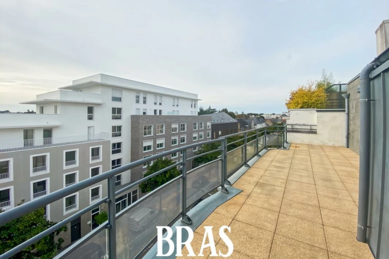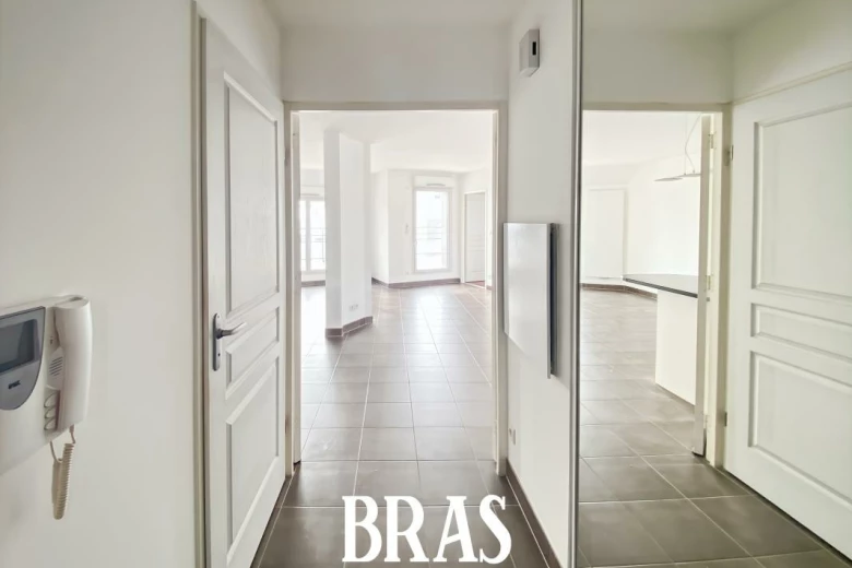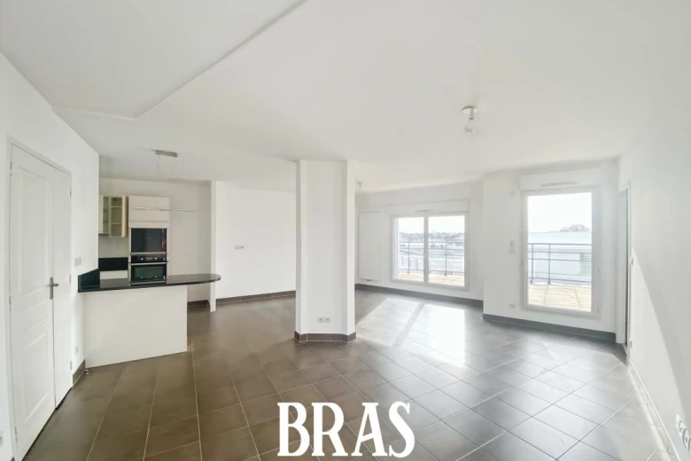 Au dernier étage, appartement de type 3 de 78.02 m² situé au 5ème étage avec ascenseur et comprenant : entrée avec placard, séjour de 33.25m²avec cuisine aménagée et équipée (3 plaques induction, hotte, four encastré, lave vaisselle), donnant sur une terrasse de 24.39 m², 1 chambre avec placard (12.56 m²) avec salle de bains privative, une 2ème chambre avec placard (10.22 m²) et salle d'eau privative donnant sur une terrasse de 9.37 m², WC séparés.