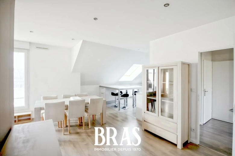 Rue Babonneau - Au sein d'une résidence de 2008, appartement de type 3 bis MEUBLÉ de 78,60 m² (86,94 m² au sol) situé au 4ème et dernier étage avec ascenseur et comprenant : une entrée avec placard, une pièce de vie de 355,97m² avec cuisine aménagée et équipée (table de cuisson induction, four, hotte et lave-vaisselle, réfrigérateur), donnant sur une terrasse de 12.89m² exposée Sud-Est, dégagement avec placard, 2 chambres de 10,59m² et 11,47m² dont une avec placard, un bureau, une salle de bains avec baignoire, meuble vasque et emplacement machine à laver, WC séparés.