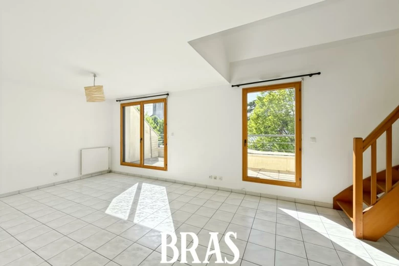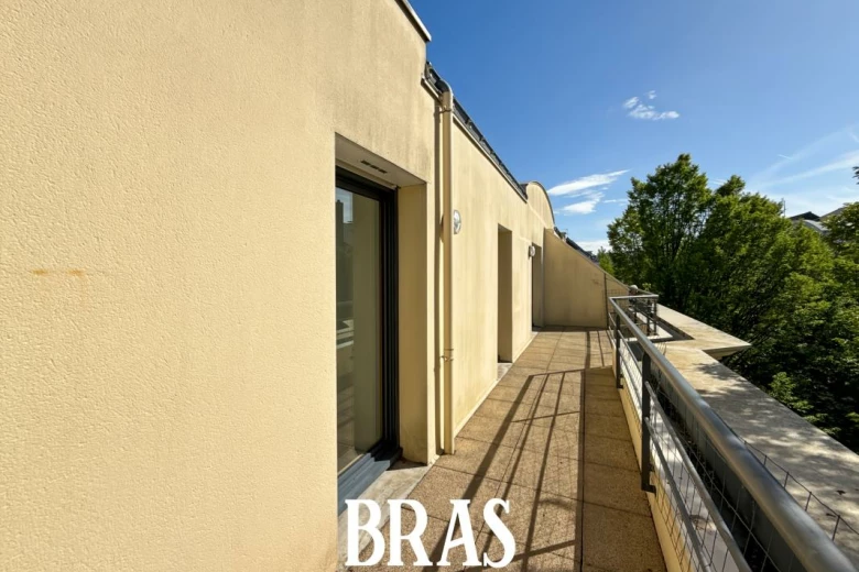Avenue du Parc de Procé - Dans une résidence calme et sécurisée, à proximité immédiate des commerces et transports en communs (chronobus ligne C3), un appartement de type 3 DUPLEX de 79,41m² situé au 4ème et dernier étage et comprenant : entrée avec placard, séjour de 23,41m² donnant sur une terrasse, cuisine séparée, aménagée et équipée, dégagement, une chambre de 11,12m², salle d'eau avec douche et meuble vasque, WC séparés. À l'étage, une chambre de 13,84m² avec placard, salle de bains avec baignoire, meuble vasque et WC, accès à une seconde terrasse.