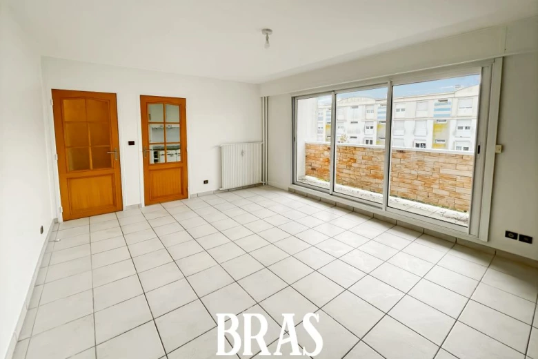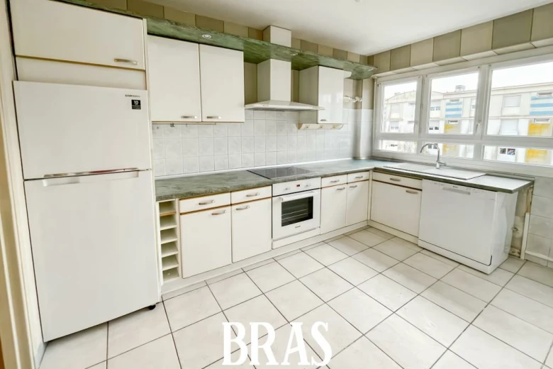 Rue Yves Kartel - Au coeur du quartier Bellevue, dans une résidence avec gardien, situé au 4ème étage avec ascenseur, un appartement de type 4 de 76m² comprenant : Entrée avec placard, salon donnant sur petit balcon exposé Sud Est , cuisine aménagée et équipée (réfrigérateur, congélateur, four, hotte, plaques de cuisson vitrocéramiques, lave vaisselle), 3 chambres dont une avec placard, salle d'eau avec double vasque, cellier, WC séparés.