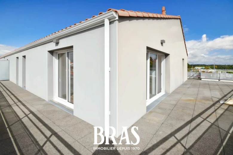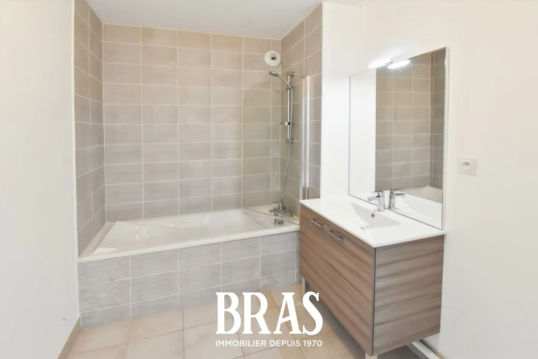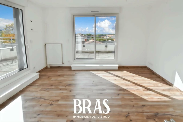 Dans une résidence de 2018, situé au 2ème et dernier étage avec ascenseur, un appartement de type 4 de 79.30 m² comprenant une entrée avec placard, une pièce de vie avec cuisine aménagée et équipée de 27 m² (table de cuisson, hotte, four, réfrigérateur et lave vaisselle) donnant sur une vaste terrasse de plus de 74 m², 3 chambres dont une suite parentale avec salle d'eau et placard, une salle de bains, WC séparés. 2 places de parking extérieures.