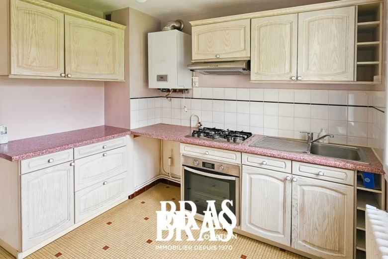 Dans une résidence calme et verdoyante, un appartement T4 de 83 m² environ situé au 1er étage, comprenant: une entrée, une cuisine séparée aménagée et équipée de plaques gaz, four et hotte, un séjour sur balcon sans vis à vis, un dégagement avec placard, trois chambres dont deux avec placards aménagés, une salle de bains, un WC. Une cave.