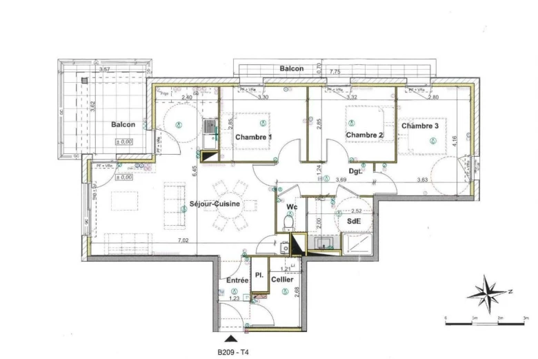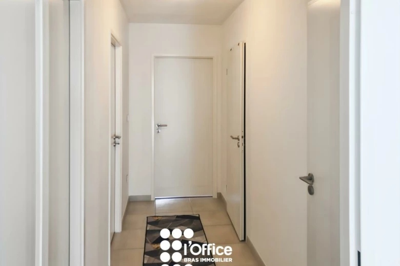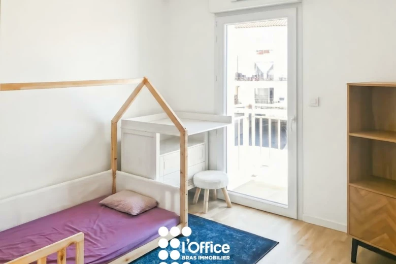 L'appartement se compose d'une entrée, d'un cellier, d'un séjour lumineux donnant sur un balcon, d'une cuisine aménagée et équipée, d'une pièce d'eau et de trois chambres. Il dispose également d'un garage fermé en extérieur ainsi que d'un second cellier à l'extérieur.