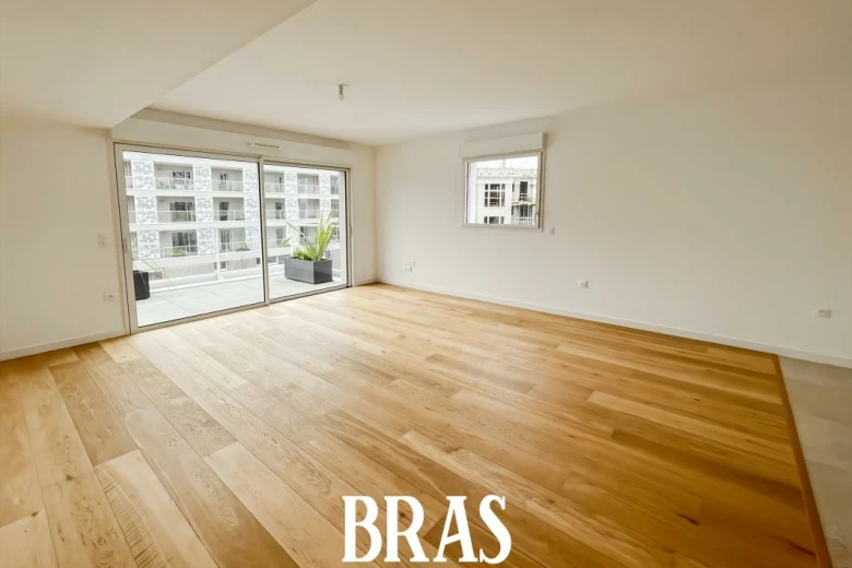Rue Camille Flammarion - Dans une résidence neuve, à proximité immédiate de la place Anatole France, des commerces et transports en communs (bus ligne 26 et C8 et tram 3 arrêt Felix Fabarbgarure), un appartement de type 4 de 83,65 m² situé au 3ème étage avec ascenseur et comprenant : une entrée avec cellier, une pièce de vie de 29,53m² avec cuisine aménagée et équipée, donnant sur un balcon de 12,32m² exposé Nord-est, dégagement, 3 chambres de 12,62m², 9,62m² et 10m² dont une suite parentale avec salle d'eau privative, une salle de bains avec baignoire et meuble vasque, WC séparés.