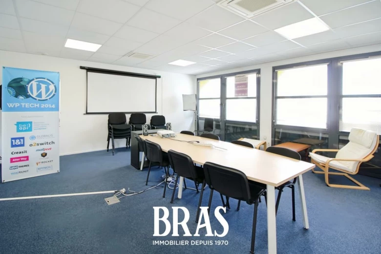 REZE- Centre à proximité du tram "8 Mai", des bureaux de 179 m2 avec une surface privative de 134 m2 et des comprenant : 3 bureaux cloisonnés, une grande salle de réunion et un espace tisanerie