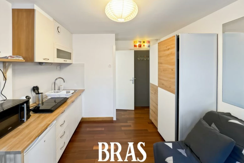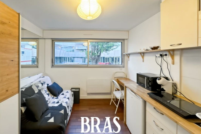 Situé au 1er étage sans ascenseur d'une petite copropriété, un studio meublé de 12.54 m². Pièce de vie avec coin cuisine équipé (plaques de cuisson vitrocéramiques, micro ondes et réfrigérateur table top) une salle d'eau/wc.