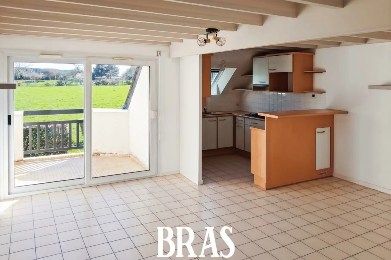 Un appartement de type 2 bis en duplex de 41.56 m² (55.53 m² au sol) comprenant en rez de chaussée : entrée (avec placards), séjour donnant sur un balcon de 4.54 m², cuisine aménagée et équipée (plaques de cuisson et hotte aspirante), une chambre (avec placards), w.c séparés. A l'étage : une pièce en mezzanine et une salle de bains.