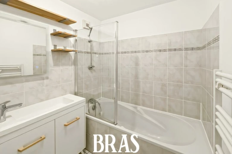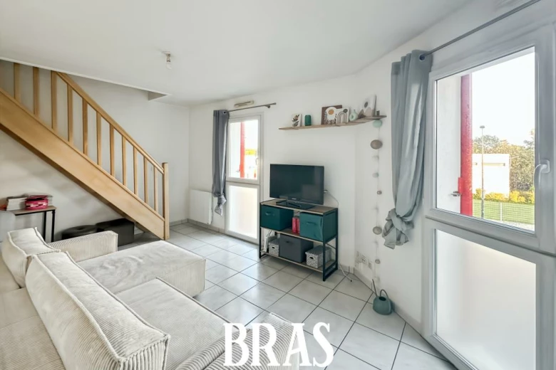 Dans une résidence de 2008, appartement de type 2 DUPLEX de 50,33m² situé au 2ème étage sans ascenseur et comprenant : une entrée avec placard, une pièce de vie de 26,61m² avec cuisine aménagée et équipée (plaques de cuisson induction 3 feux, hotte, four et emplacement machine à laver), WC séparés. À l'étage, une chambre de 12,31m² avec grand placard, une salle de bains avec baignoire et meuble vasque.