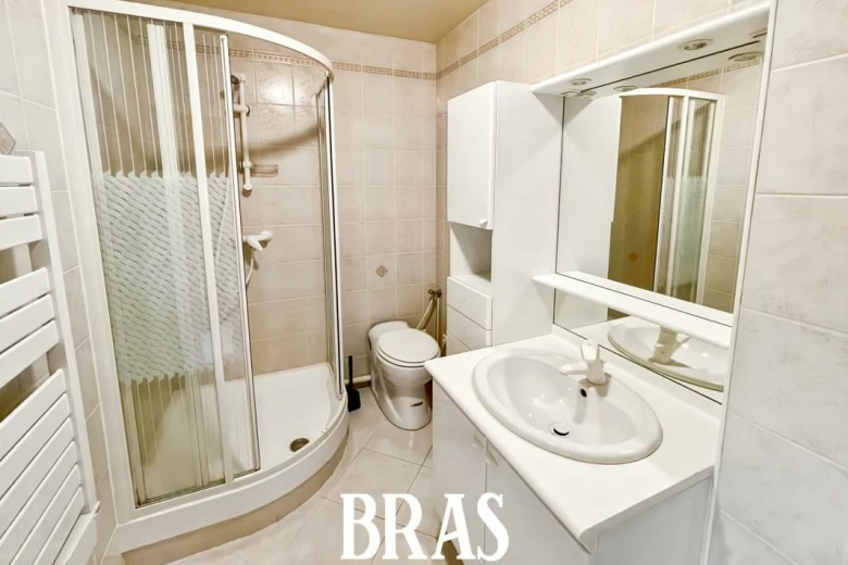 A l'étage : une grande pièce avec placard, une chambre avec placard, une salle d'eau avec WC. Sami Broyeurs - En partie supérieure : une mezzanine.
