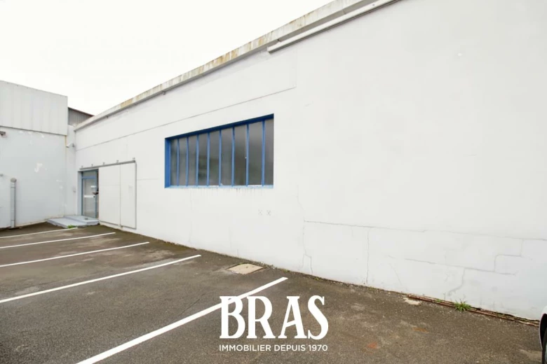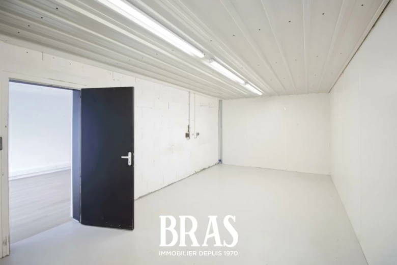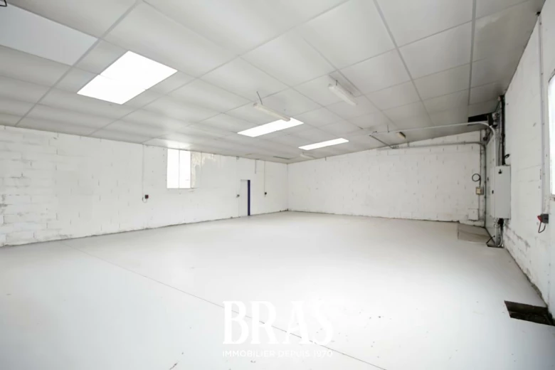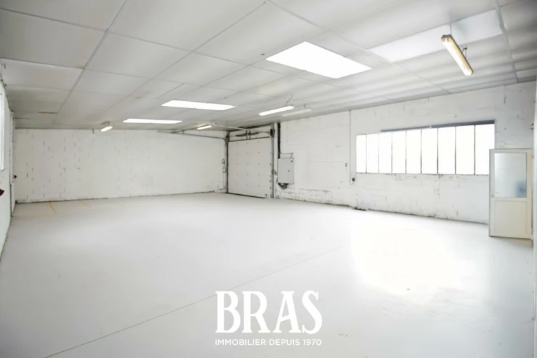Un grand bureau d'accueil (25m2), avec vitrine, vestiaires avec douche (10m2), un entrepôt de 230m2 avec porte sectionnelle automatique de 4m X 4.50m et un local de stockage de 24.32 m2 à l'arrière. 5 places de stationnement