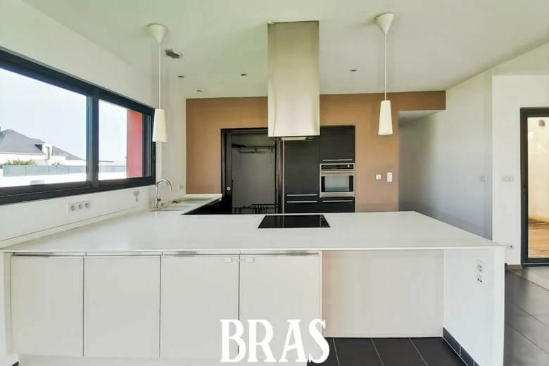 Maison 5 pièces (120.97m²) comprenant : une entrée, une cuisine ouverte aménagée et équipée donnant sur séjour (44,52m²), une arrière cuisine, 3 chambres dont une suite parentale avec dressing et salle d'eau attenante, une salle de bains, w.c séparés et une mezzanine.