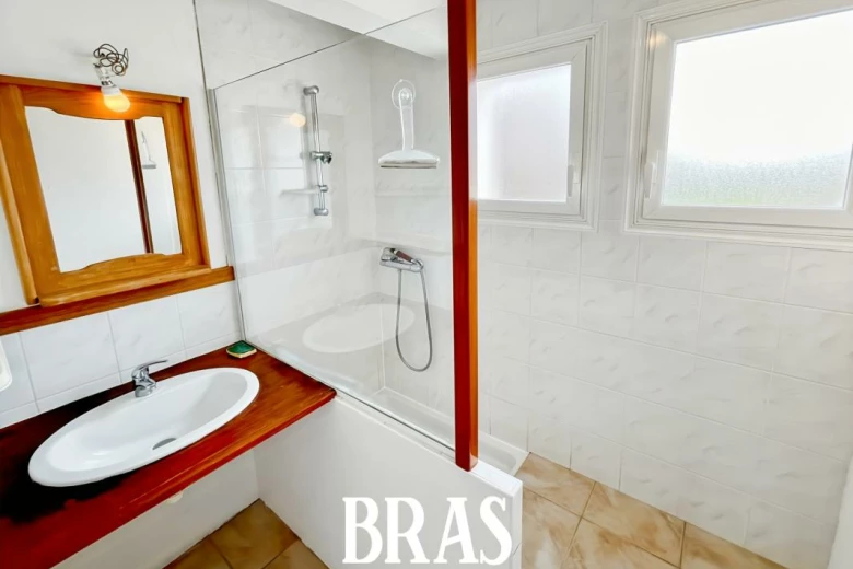 Au 1er étage : une entrée, un salon/séjour exposé SUD ouvert sur la cuisine aménagée, un bureau, une chambre avec placards, une salle d'eau, un wc.