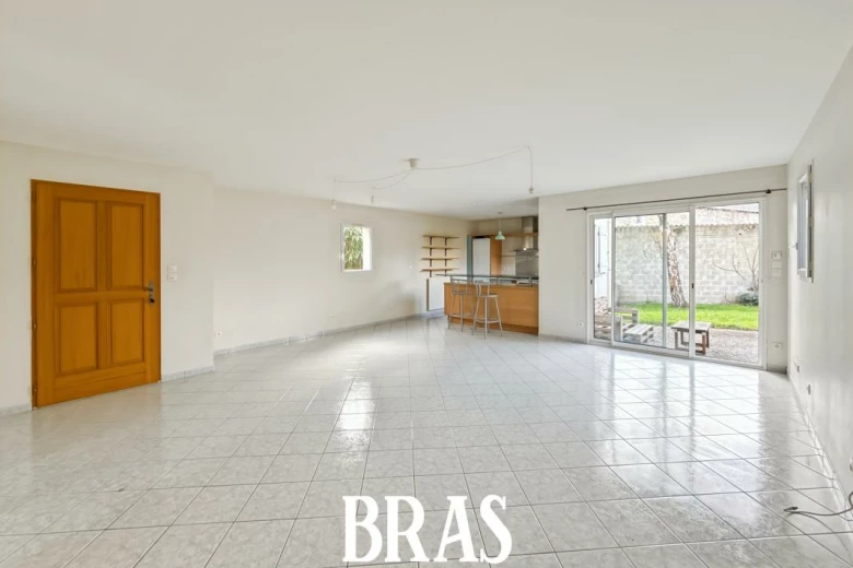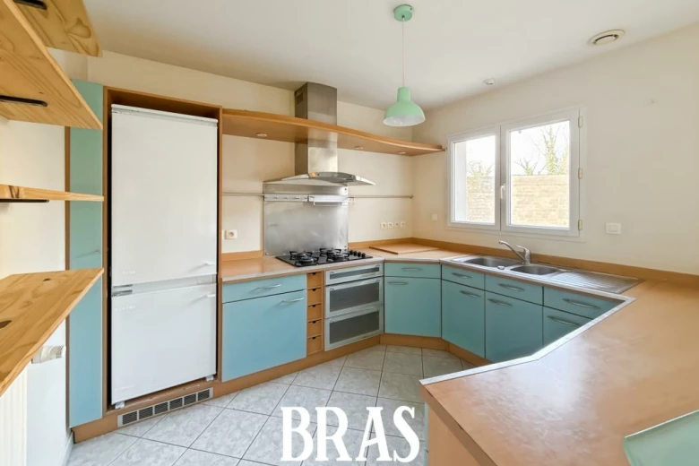 Rue de la Pompe - A l'entrée Ouest de Nantes, facilité d'accès au périphérique et du pont de Cheviré, maison de plain-pied, comprenant : une pièce de vie avec une cuisine ouverte, aménagée et équipée (plaque au gaz, réfrigérateur et hotte), trois chambres avec placards, une salle de bains avec douche, baignoire et deux vasque, WC séparés. Un espace buanderie et un garage accessible depuis la maison.