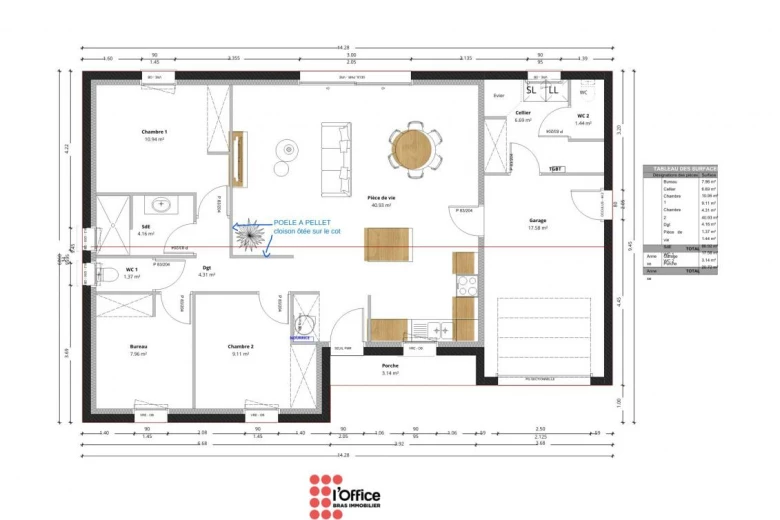 Pratique au quotidien : un cellier avec espace buanderie et un garage spacieux de 17,58 m².