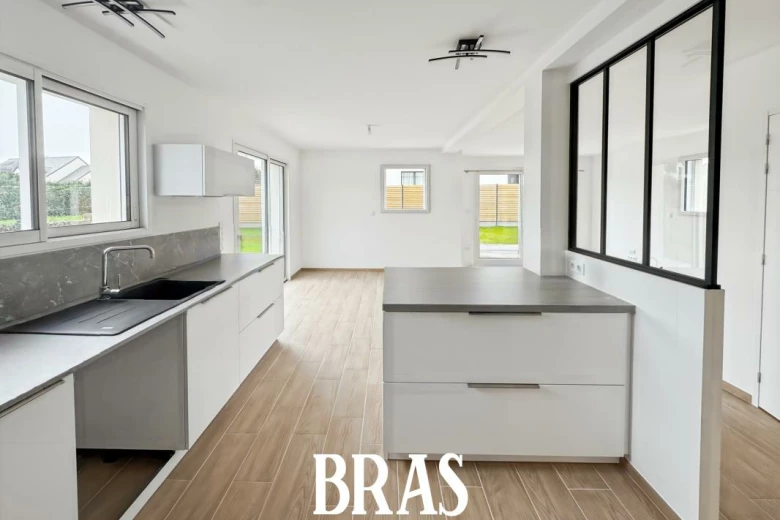Boulevard du 19 Mars 1962 - Sur un terrain de 285m², une maison neuve de 96.46 m² offrant des prestations de qualités, comprenant au rez-de-chaussée : une entrée avec placard, une grande pièce de vie de 35,11m² baignée de soleil avec cuisine ouverte entièrement aménagée et équipée (plaques induction trois feux et hotte), une arrière cuisine, une chambre offrant une salle d'eau attenante avec douche et meuble vasque, un dégagement, WC séparés.
