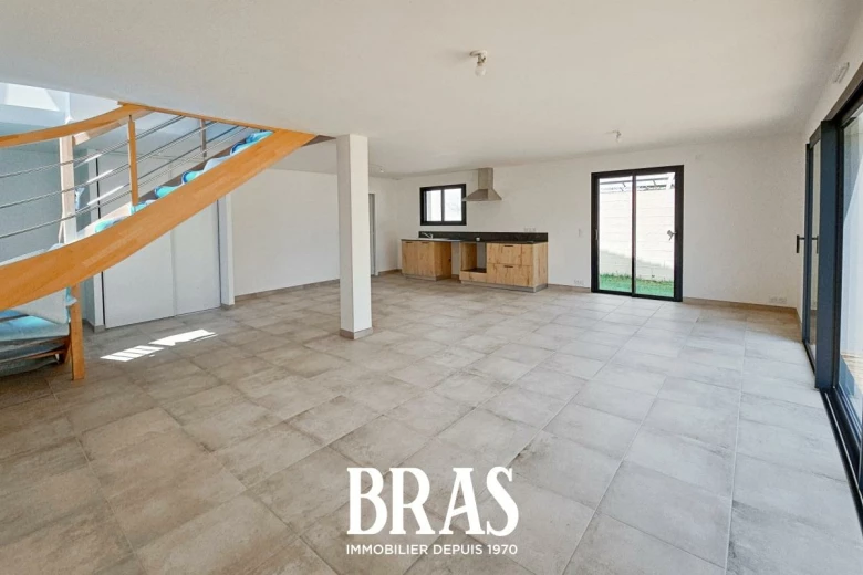 Maison très récente de type 5 de 114.99 m² secteur Beautour, comprenant au rez-de-chaussée une pièce de vie avec cuisine aménagée et équipée (table de cuisson vitrocéramique, hotte) donnant sur un jardin, un cellier, une suite parentale avec salle d'eau privative, wc, un garage.
