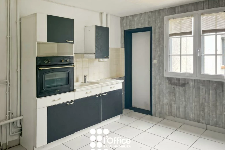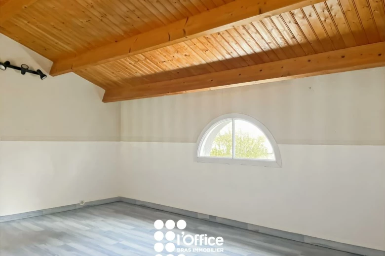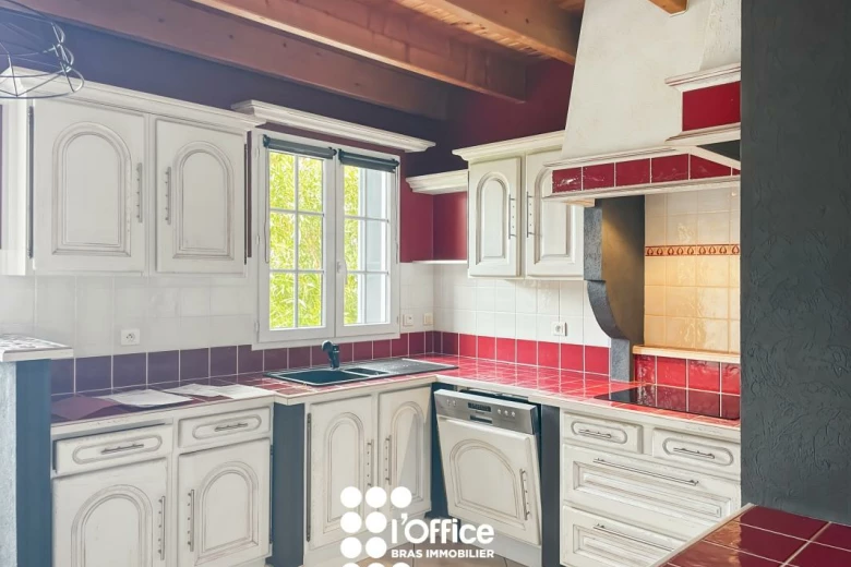 La maison dispose également d'une arrière-cuisine fonctionnelle (plaque gaz, hotte, four, rangements hauts et bas). Celle-ci mène à une pièce supplémentaire bénéficiant d'un accès indépendant par l'extérieur, avec accès rangements par les combles.