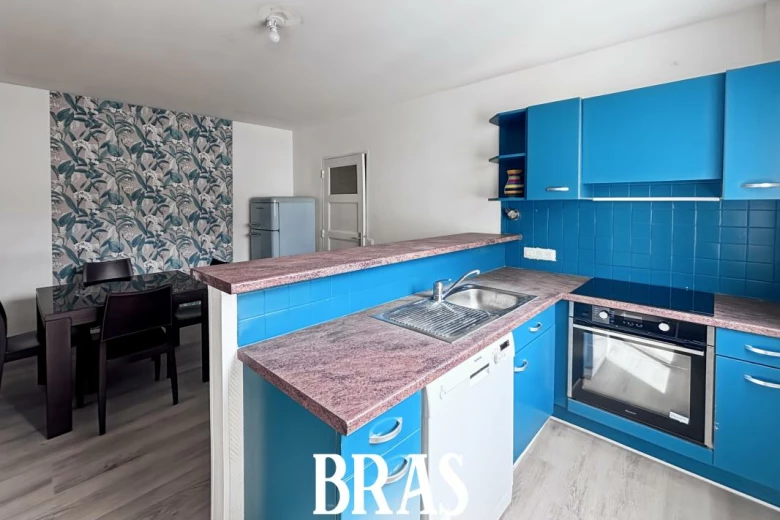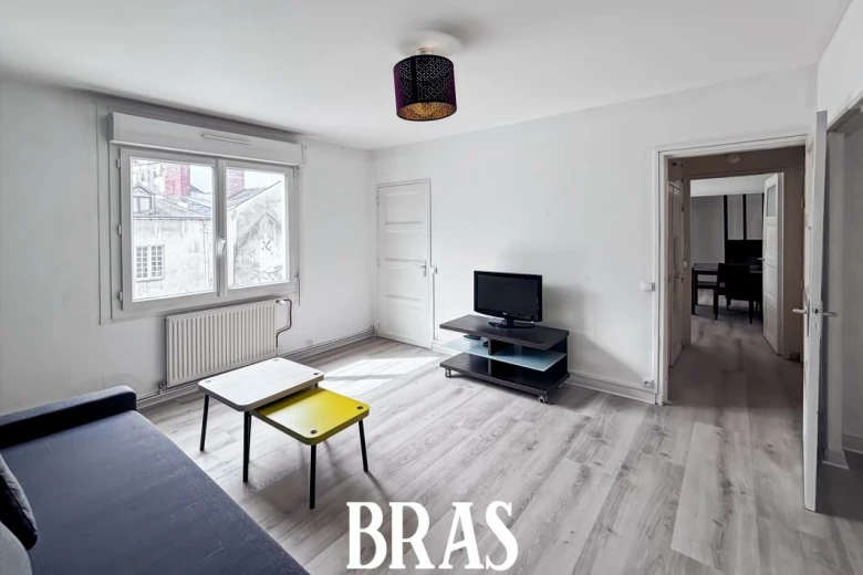 Au cœur du centre ville, à proximité immédiate des transports en communs et commerces, appartement de type 2 Bis MEUBLÉ de 51,25m² situé au 5ème étage avec ascenseur et comprenant : entrée sur séjour avec cuisine aménagée et équipée(réfrigérateur, hotte, plaques de cuisson, four, lave-vaisselle, micro-ondes), dégagement avec placard, un salon avec placard, une chambre avec placard, une salle d'eau avec douche et lavabo et lave-linge, WC séparés.