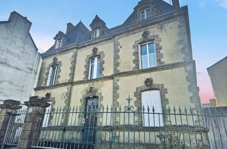 Les murs en granite et en pierre de taille, la toiture en ardoise et l’escalier axial central participent à l’élégance de cet ensemble, aujourd’hui composé de logements intégrés à une copropriété dont la gestion est assurée par notre agence immobilière à Vannes, en lien étroit avec les copropriétaires.